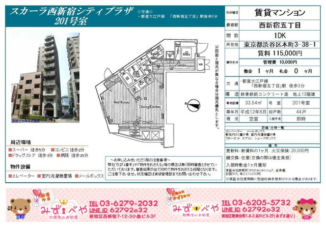 スカーラ西新宿シティプラザ詳細はこちら礼金0ヶ月敷金1ヶ月賃料:115,000円管理費:10,000円間取り:1DK&n...