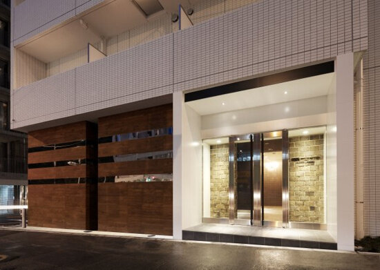 白基調のタイルに黒のラインを配したモノトーンの外観デザインが東麻布の街に映えています。
