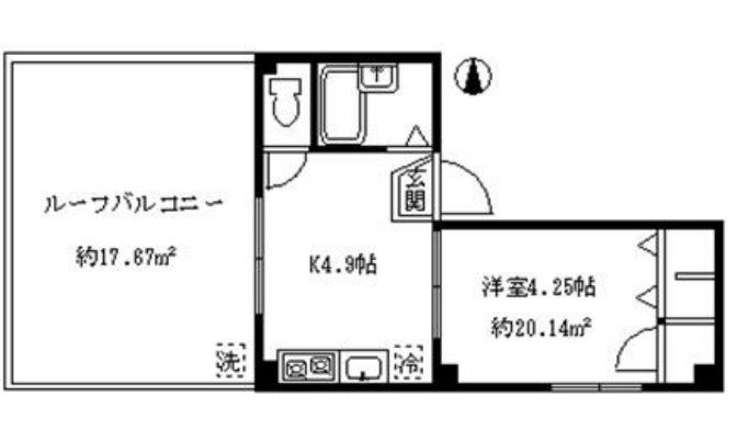 ルーフバルコニー付きの1Kタイプのお部屋で、家具家電付きになっているので急なお引越しの方でも安心して住むことが出来ます。