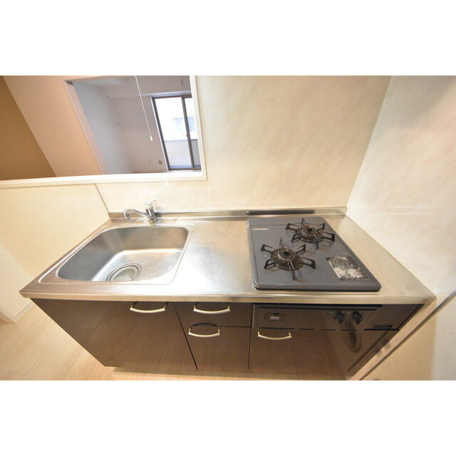 バス・トイレ別/浴室暖房/浴室乾燥機/温水洗浄便座/独立洗面台/カウンターキッチン/シャンプードレッサー付き洗面台/システムキッチン/2口コンロ/フローリング/クローゼット/シューズボックス/エアコン