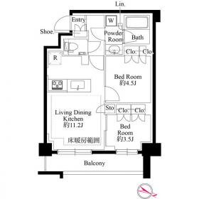 システムキッチン/バス・トイレ別/浴室換気乾燥暖房機/フローリング/エアコン/室内洗濯機置き場/シューズボックス/3口コンロ/バルコニー/床暖房/温水洗浄便座/独立洗面化粧台/お湯張り・追炊き機能付きバス/カラーモニター付きインターホン/クローゼット/ペット可/インターネット無料