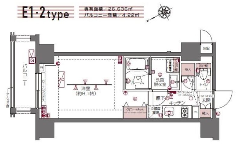 | 間取り・専有面積 | 1K / 26.63m²~ |